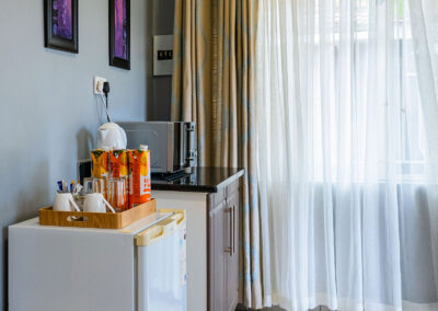Well maintained facilities. I loved the kitchen area with all amenities, it makes the place a good hide out from busy city life or when traveling.